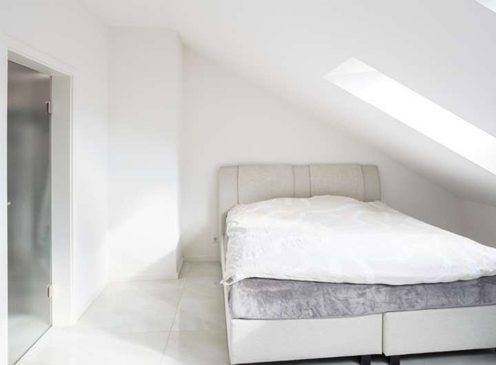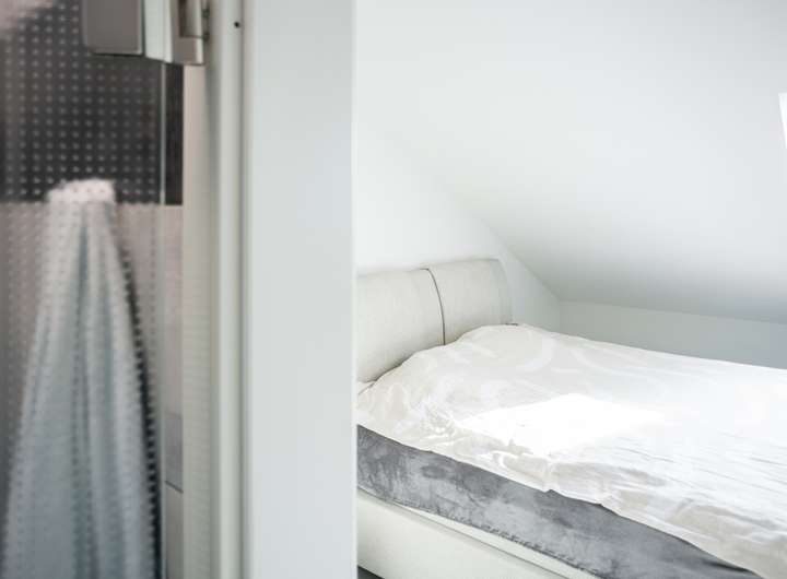 DAS DACHGESCHOSS wurde ausgebaut und umfasst ein weiteres Zimmer, das sich hervorragend als Studio oder Hobbyraum eignet. Ein eigenes Bad sowie ein Abstellraum befinden sich ebenfalls auf dieser Etage. Die eingebauten, passgenauen Einbauschränke sorgen für optimal genutzten Stauraum in den Dachschrägen.