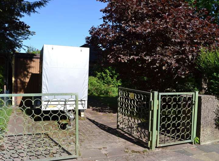 - Überdachung hinter Garage (für Fahrräder, Rasenmäher, Gartengeräte, etc.)