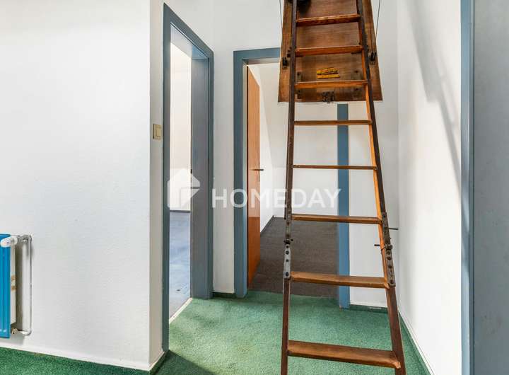 Im Obergeschoss befinden sich drei weitere Schlafräume, die flexibel als Kinderzimmer, Gästezimmer oder Arbeitszimmer genutzt werden können. Das Badezimmer auf dieser Etage wurde im Jahr 2002 saniert und präsentiert sich in gepflegtem Zustand. Das Dach wurde ebenfalls im Jahr 2002 gedämmt, was zu einer verbesserten Energieeffizienz und einem angenehmen Raumklima beiträgt.