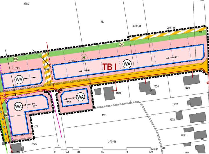 Es stehen Grundstücksgrößen von 515 m² bis 772 m² zur Verfügung.