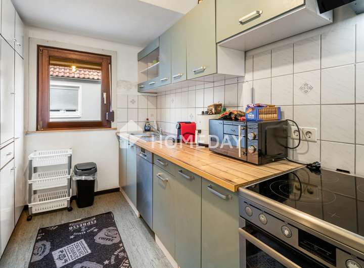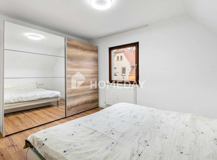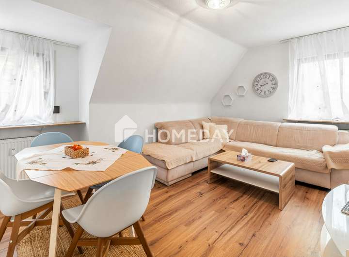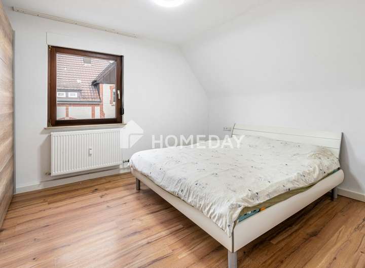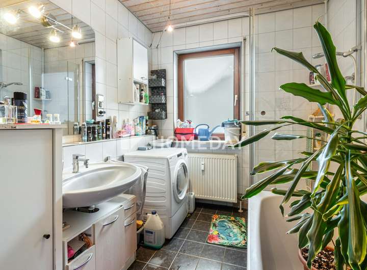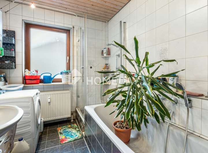Die Wohnfläche verteilt sich auf zwei gut geschnittene Wohnungen, die durch ihre durchdachte Raumaufteilung und Ausstattung überzeugen. Die Wohnungen bieten jeweils ein Tageslichtbad – mit Badewanne und Dusche – und sind mit einer Mischung aus Holzdielen und Laminatböden ausgestattet. Der Balkon im ersten Obergeschoss lädt dazu ein, den Außenbereich in vollen Zügen zu genießen.