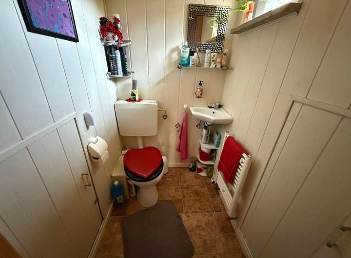 Flur, Küche(mit EBK), Wohn-/Esszimmer, Schlafzimmer, Toilette mit Waschbecken. Bei einem kleinen Umbau lässt sich im OG eine Dusche einbauen: die Pläne liegen vor.