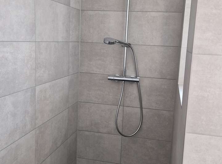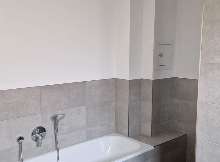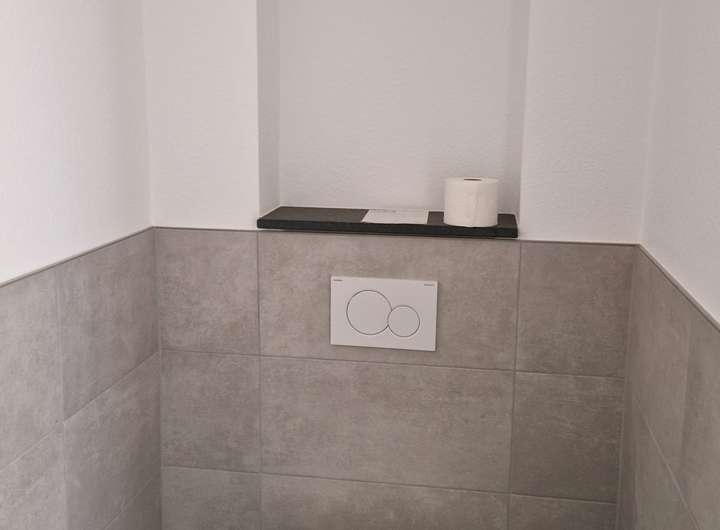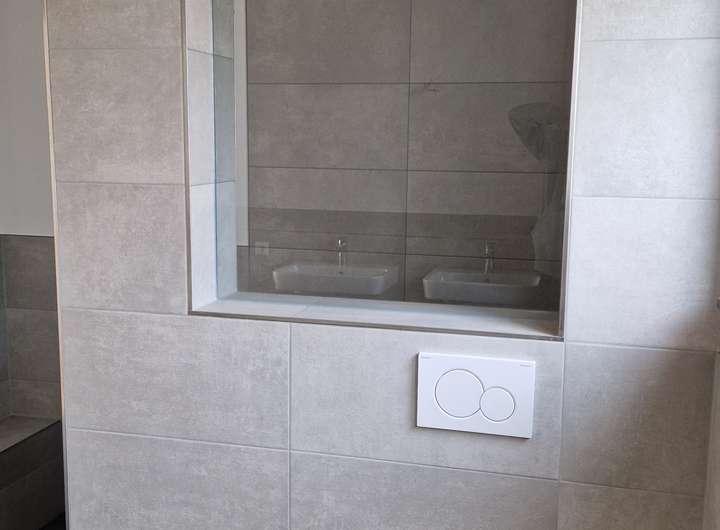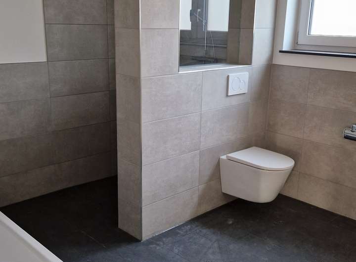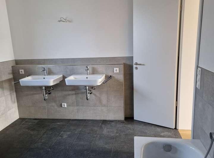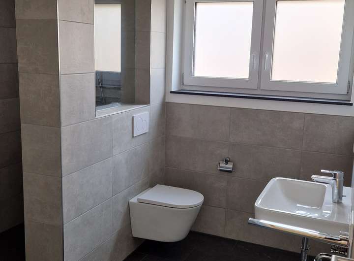 Im 1 OG und im DG sind Badezimmer mit ebenerdigen begehbaren Duschen vorhanden, zusätzlich im 1. OG befindet sich noch eine Badewanne sowie 2 separate Waschbecken.