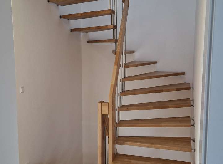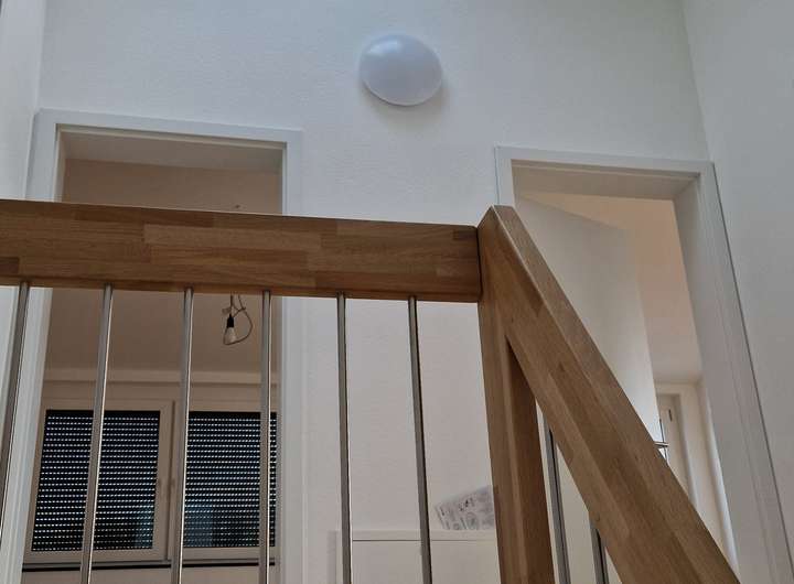 Die Innenausstattung ist höherwertig mit elektrischen Rollläden, Wäscheabwurf in den oberen Geschossen, mit Fußbodenheizung in allen Zimmern und einer Luftwärmepumpe.