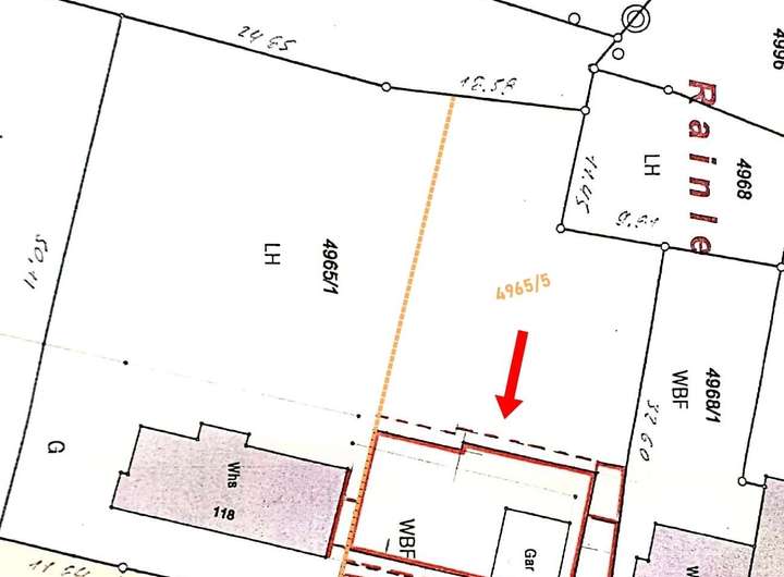 Derzeit steht eine Fertig-Garage auf dem Grundstück, die zum Abriss bereitsteht oder optional ein Einfamilienhaus angrenzend zur Garage gebaut werden kann. Somit sparen Sie sich die Kosten, die für eine Garage entstanden wären.