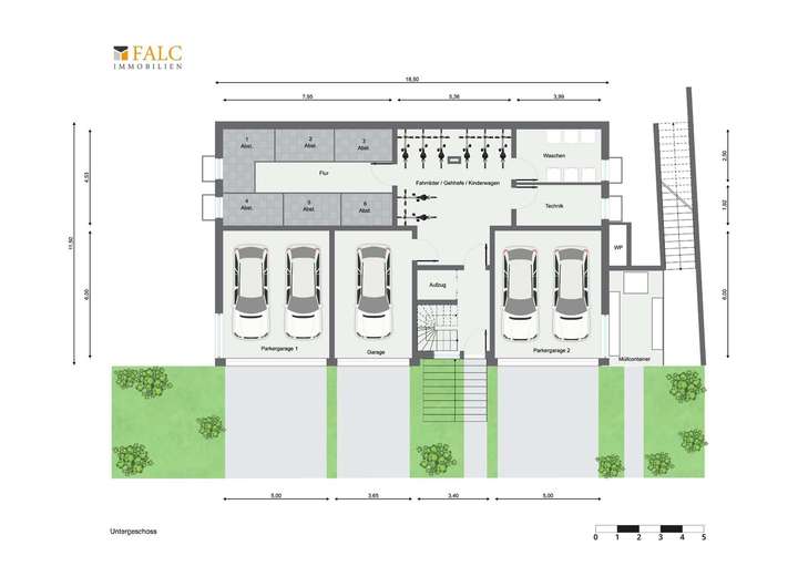 - 2 auffahrbare Duplex-Garagen mit insg. 8 Stellplätzen + 1 Garage.