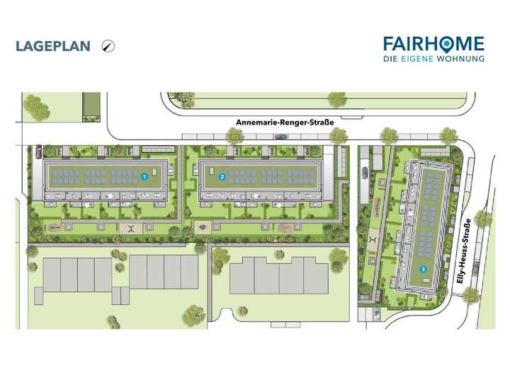 • Wohnungen sind mit effizienter Fußbodenheizung ausgestattet