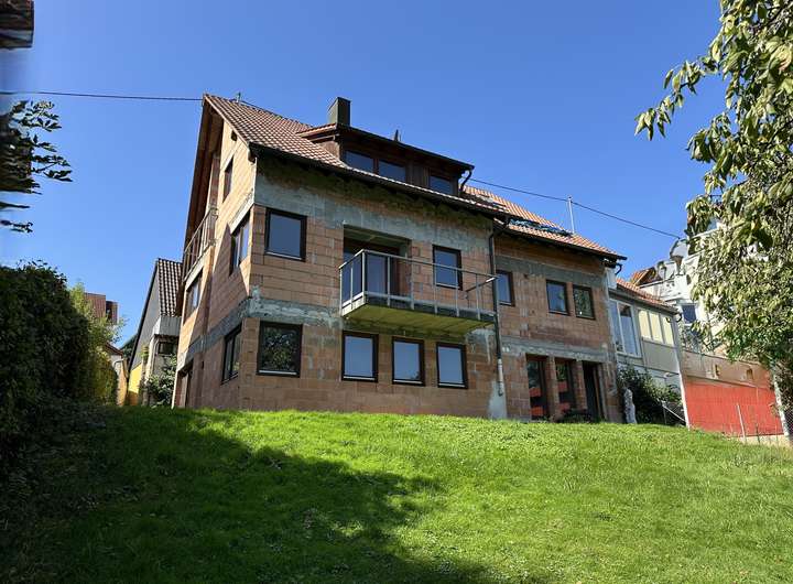 Im nördlichen und rückwärtigen Grundstücksbereich des Flurstücks ist ein 1 ½-geschossiger Rohbau, eine Doppel-haushälfte, mit talseits freigestelltem Hanggeschoss, errichtet.