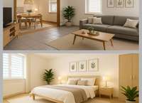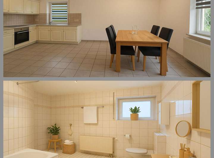 Bei den Fotos handelt es sich um KI-generierte Einrichtungs- bzw. Möblierungsbeispiele.