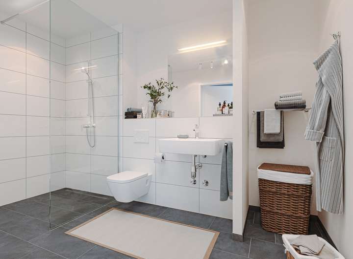 • Moderne Sanitärausstattung mit qualitätsvollen Produkten namhafter Hersteller