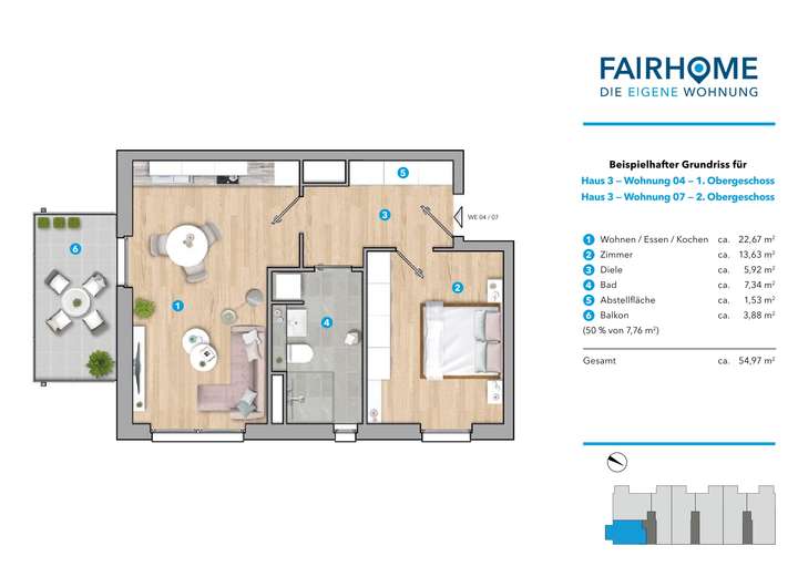 „Am Glessener Feld“ entstehen attraktive und nachhaltige FAIRHOME Wohnungen mit unterschiedlichen Raumangeboten. Ganz gleich ob Singles, Paare oder Familien mit Kindern: Die Eigentumswohnungen von FAIRHOME bieten Wohnqualität zu einem exzellenten Preis-Leistungs-Verhältnis für jede Situation und Lebensphase.