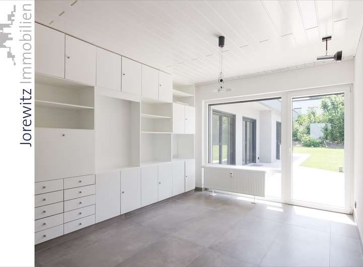 Attraktive 5 Zimmer-Wohnung, Diele, Küche mit Einbauküche, Essdiele, Tageslichtbad, Gäste-WC, Keller inkl. zusätzlichem WC und Hobbyraum, Doppelgarage, Wintergarten (ca. 20 m²) mit Außenkamin, Terrasse und großzügigem Garten, ca. 174 m² Wohnfläche im Erdgeschoss, zzgl. zusätzlicher Nutzfläche im Kellergeschoss. Das Haus ist vollunterkellert und hat einen direkten, überdachten Zugang zum Garten und in die Garage.
