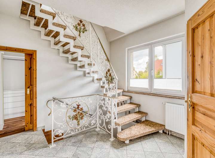 In den vergangenen 13 Jahren wurde das Haus Schritt für Schritt modernisiert und präsentiert sich heute in einem hervorragenden, gepflegten Zustand. Schon beim Betreten fällt die hochwertige Ausstattung ins Auge: Materialien wie Granit im Eingangsbereich und eine elegante Steintreppe, die in das Haus und den hellen Wohnbereich führt, verleihen dem Haus eine besondere Note.