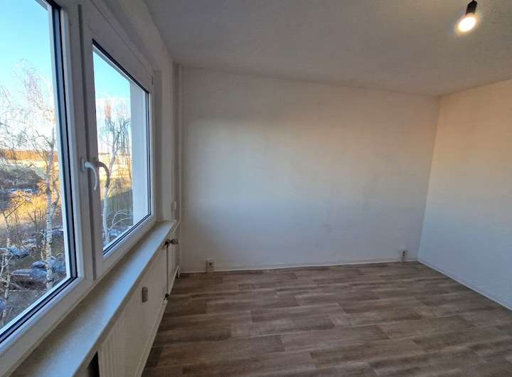 - PVC- Bodenbelag und Raufasertapete in den Wohnräumen