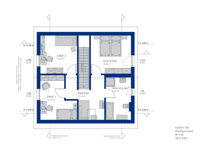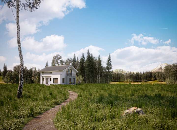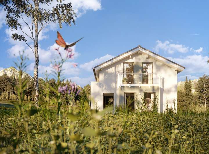 Das Haus ist auf einem realen Baugrundstück geplant oder auf einem Grundstück in einer Planungsphase. Die Bilder zeigen ggf. Extras, die im Rahmen des Bebauungsplans noch geprüft werden müssen.