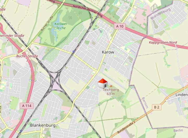 Mit der S-Bahn Linie 2 erreichen Sie die Berliner Innenstadt innerhalb von 20 Minuten, in die umliegenden Bezirke gelangen Sie bequem mit dem 150er Bus. Der S-Bahnhof Karow ist ca. 1,5 km von der Immobilie entfernt. Von hier aus verkehrt die S2-der Berliner S-Bahn sowie die Regionalbahnlinie der NEB, RB27 und der Bus 350. Auch die Anbindung an die Autobahn (Berliner Ring) ist sehr gut.