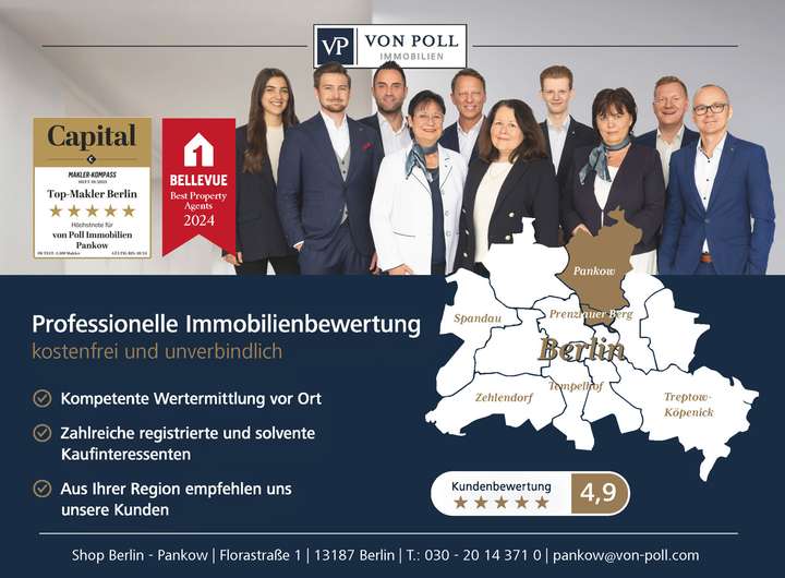 Karow ist ein Ortsteil von Weißensee und zählt zum Bezirk Pankow. Der Stadtteil Karow zeichnet sich besonders durch seine gewachsene Struktur aus. Im Nordwesten befindet sich das Naturschutzgebiet Karower Teiche. Der Landschaftspark Barnim und der Pankower Golfplatz sind nur einen Steinwurf entfernt und laden ein, die Natur zu genießen. Die direkte Nachbarschaft besteht hauptsächlich aus Einfamilien- und Doppelhäusern. Kindergärten, Schulen und Geschäfte für den täglichen Bedarf befinden sich in unmittelbarer Nähe.