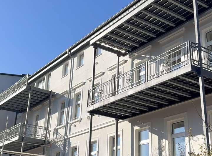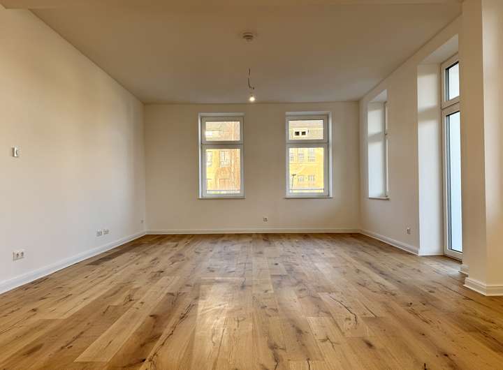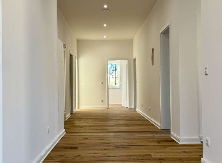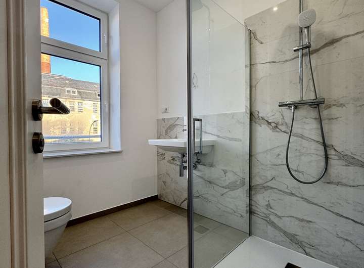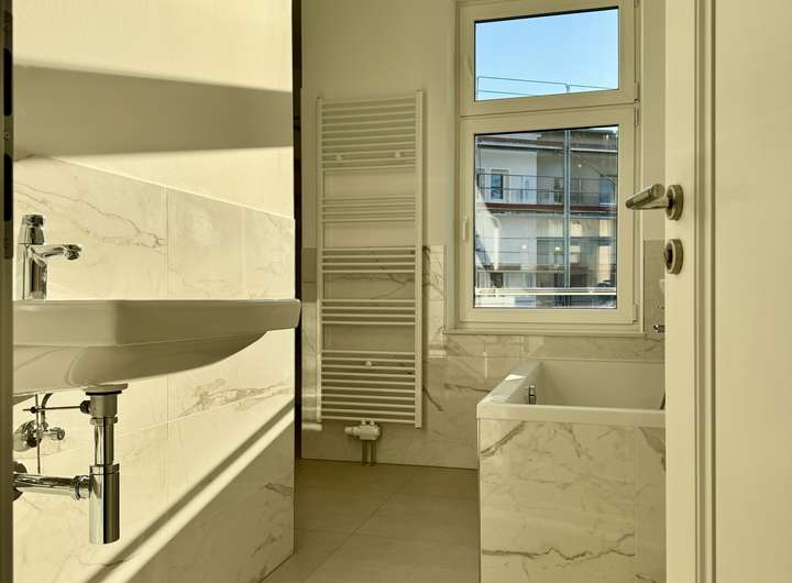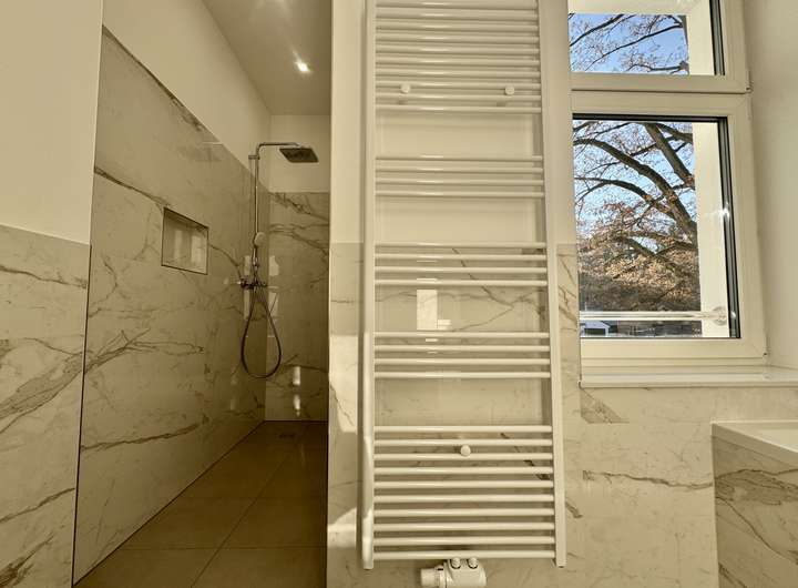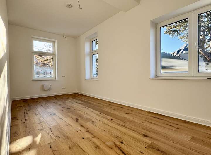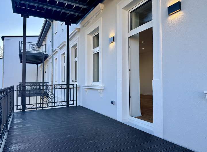 In dieser charmanten Villa wurde eine moderne 4,5-Raum-Wohnung geschaffen, die durch ihre hochwertige Ausstattung und das besondere Flair überzeugt. Bei der Sanierung wurden edle Materialien verwendet, die den Charakter der Wohnung unterstreichen. Die durchdachte Raumaufteilung sorgt für viel Platz und Komfort, und die Fußbodenheizung unter dem Echtholzparkett trägt zusätzlich zum Wohlfühlambiente bei. Das großzügige Badezimmer ist mit einer Badewanne, einer bodengleichen Dusche und einem Gäste-WC ausgestattet, welches ebenfalls eine bodengleiche Dusche hat. Der Balkon bietet einen herrlichen Blick ins Grüne. Zwei Außenstellplätze sind nicht in der Warmmiete inklusive.