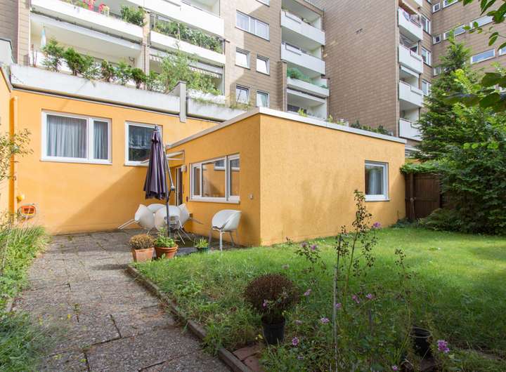 Der angebotene Bungalow ist Teil einer WEG und befindet sich in einer ruhigen Innenhofanlage mit insgesamt acht Bungalows.