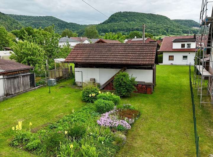 Hinter dem Haus im Garten befindet sich eine kleine Scheune, die als Gartenhütte genutzt werden kann. Eine Garage mir Lagerraum sorgt für Komfort und rundet das Angebot ab.