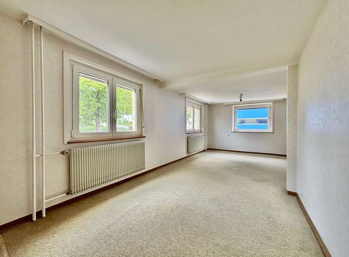 Dieses ehemalige Bauernhaus ist ein Raumwunder und bietet Platz für eine ganze Familie. Sie betreten das Haus durch den Eingangsbereich mit Treppenhaus. Im Erdgeschoss erhalten Sie ein praktisches WC, eine Küche mit abgetrenntem Esszimmer, einen großen Wohnbereich und ein zusätzliches Zimmer welches als Büro oder Hauswirtschaftsraum dienen kann. Im Obergeschoss befindet sich ein großes helles Schlafzimmer und ein weiterer Raum, der sich als Kinder- oder Arbeitszimmer anbietet. Zudem erhalten Sie hier Badezimmer sowie einen großen weiteren Essbereich mit ehemaliger Küche. Im Dachgeschoss erhalten Sie zwei weitere wunderbar große Studiozimmer, die als Schlaf-, Arbeits-, oder Kinderzimmer genutzt werden können. Eine Bühne steht Ihnen ebenfalls als Abstellfläche zur Verfügung. Im Obergeschoss und Dachgeschoss erhalten Sie jeweils einen praktischen Balkon mit Blick auf die Albausläufer. Im Untergeschoss stehen zudem Technikräume und Lagerflächen zur Verfügung.