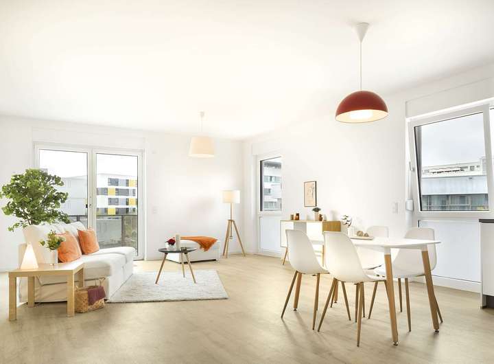 Die SONNENHÖFEN verfügen über hochwertige energieeffiziente Stadtwohnungen mit funktionalen Grundrissen und moderner Ausstattung. Alle Wohnungen haben einen sonnigen Balkon oder eine Terrasse, großzügige Markenbäder und ansprechende Designböden sowie eine Einbauküche mit Markengeräten. Es stehen Größen für fast jeden Bedarf mit 1,5 bis 4 Zimmern zur Verfügung.