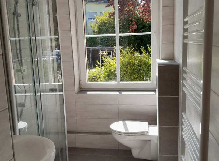 • Tageslichtbad mit bodengleicher Dusche und Handtuchheizkörper
