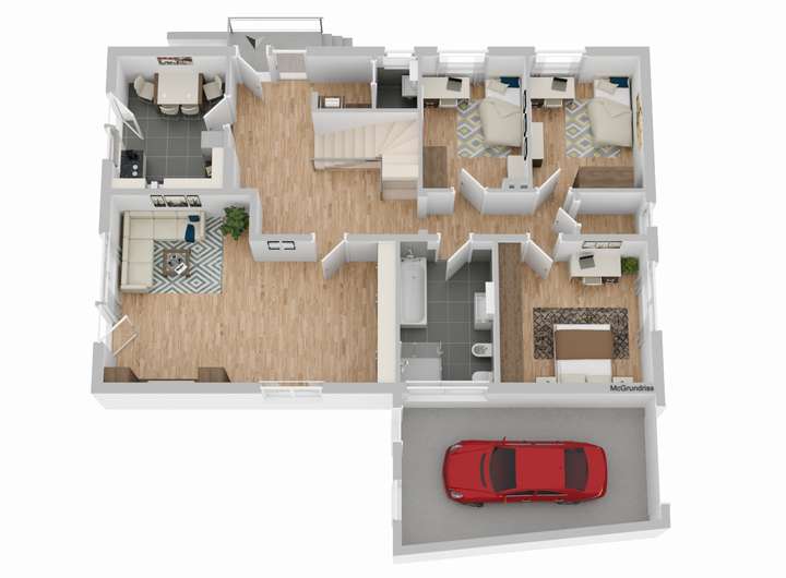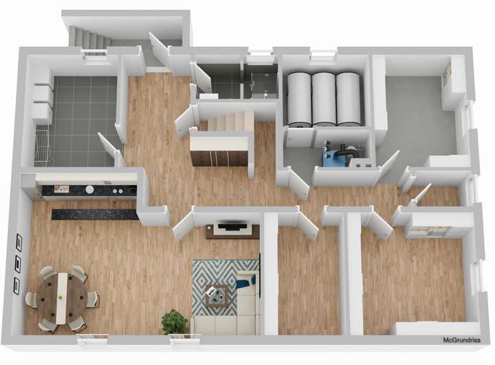 Das Obergeschoss wurde bereits für die Nutzung als Wohnraum vorbereitet und eröffnet damit wertvolles Potenzial für zusätzlichen Platz, sei es für weitere Schlafräume, ein Homeoffice oder einen individuellen Hobbybereich.