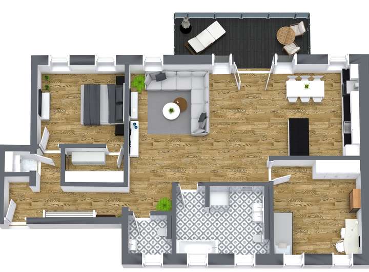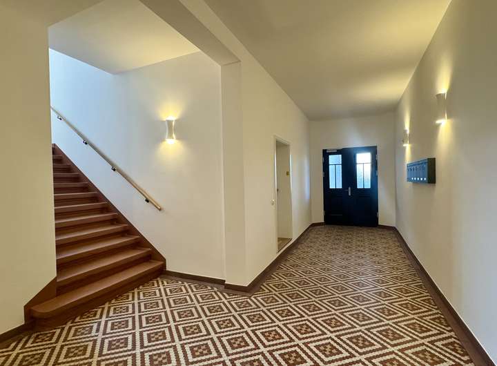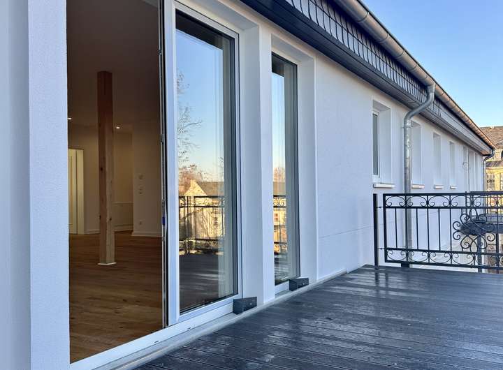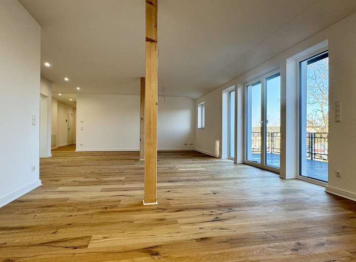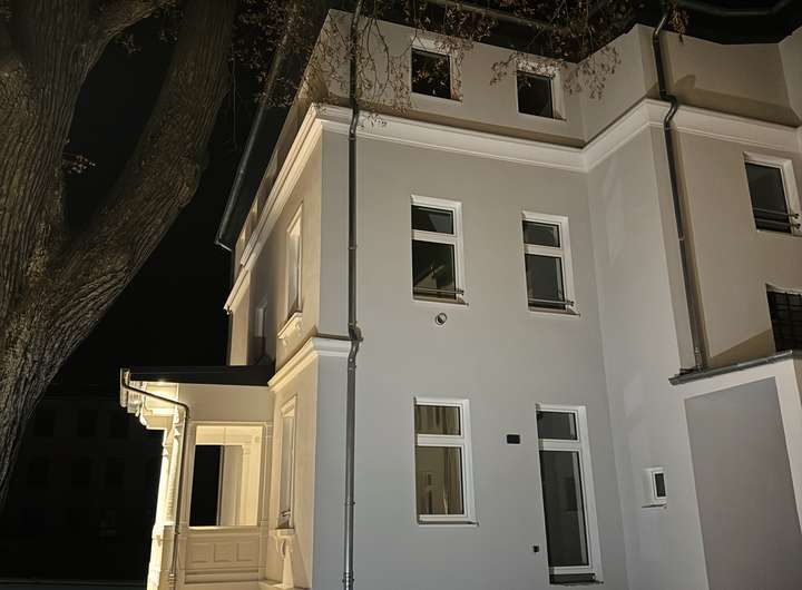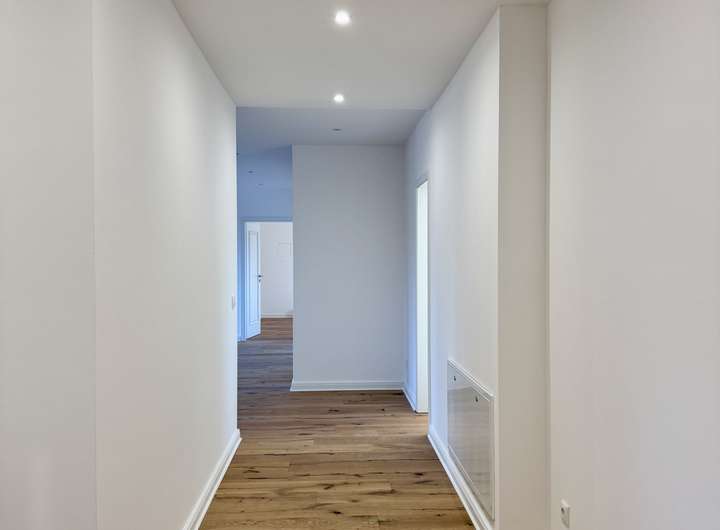 Hier erwartet Sie eine geräumige 3,5-Raum-Wohnung mit einer Fläche von ca. 128 m². Im Rahmen der Sanierung werden besonders exklusive Materialien sorgfältig ausgewählt. Die großzügigen Räume bieten nicht nur ein herrschaftliches Wohngefühl, sondern auch attraktive Möglichkeiten für zukünftige Mieter. Praktische Deckenspots in Fluren, Bädern und in der Küche schaffen eine angenehm beleuchtete Atmosphäre. Unter dem Echtholzparkett wurde Fußbodenheizung verlegt. Die offene Wohnküche vermittelt einen großzügigen Eindruck und eignet sich hervorragend für gesellige Zusammenkünfte. Die beiden Bäder sind mit exquisiten Ornamentfliesen sowie Wanne & Dusche ausgestattet. Der dritte Raum bietet Ihnen je nach Bedarf ausreichend Platz für die Gestaltung eines Kinder- oder Arbeitszimmers. Vom großen Balkon aus genießen Sie einen wundervollen Blick in die Natur und können entspannte Stunden im Freien verbringen. Zwei Außenstellplätze sind nicht in der Warmmiete inklusive. Ein exklusives Mietobjekt für höchsten Wohnkomfort.