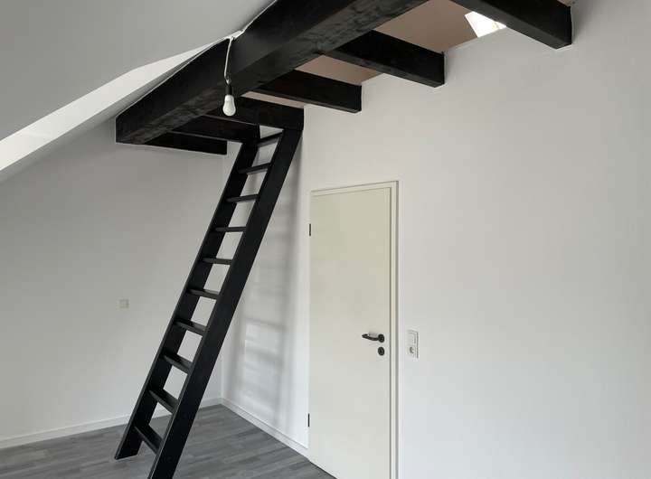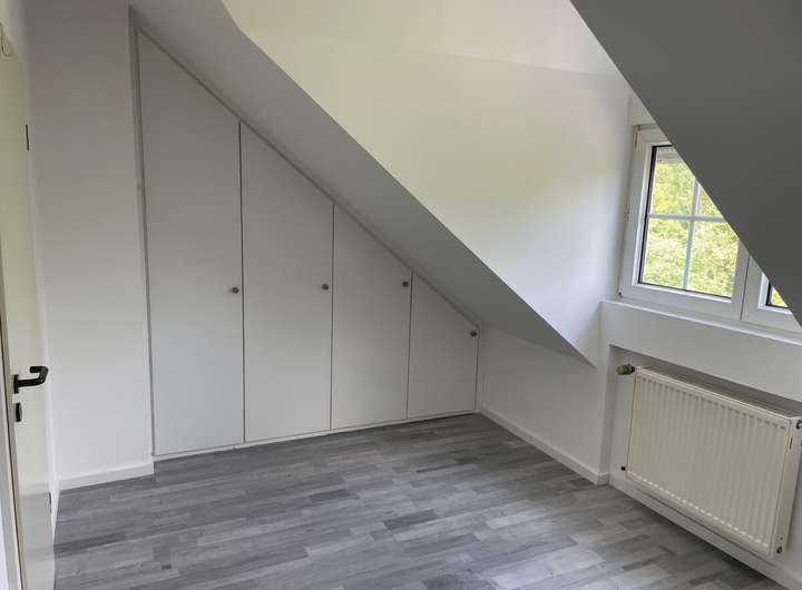 Im voll ausgebauten Dachgeschoss finden Sie zwei weitere Zimmer. Eines der Zimmer öffnet sich zum Garten hin und ist mit einer großzügigen Gaube sowie einer Galerieebene ausgestattet, die zusätzlichen Raum bietet. Das zweite Zimmer zur Straßenseite ist ideal als Büro oder Gästezimmer geeignet und verfügt über ein großes Fenster und einen Einbauschrank. Ein weiteres Badezimmer mit Dusche, Badewanne und WC komplettiert das Dachgeschoss.