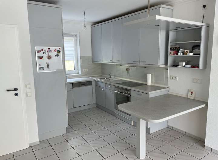 Im Erdgeschoss erwartet Sie ein großzügiger Wohn- und Essbereich, der mit großen, teils bodentiefen Fenstern für eine helle und einladende Atmosphäre sorgt. Von hier aus gelangen Sie direkt auf die Terrasse und in den liebevoll gestalteten Garten, der zu erholsamen Stunden im Freien einlädt. Die offene Küche, die Diele und ein separates WC vervollständigen das Raumangebot auf dieser Ebene.