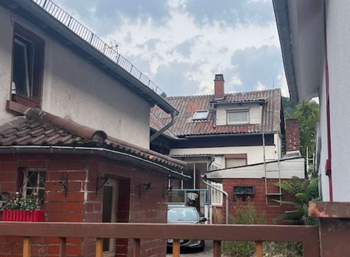 Es handelt sich um ein bebautes Grundstück mit 2 Wohnhäuser und Nebengebäude. Die Gebäude sind in einem abbruchreifen Zustand. Auf der linken Seite ist Grenzbebauung möglich. Das Vorderhaus ist straßenbündig erstellt. Tatsächliche Nutzungsart zurzeit Wohnbaufläche.