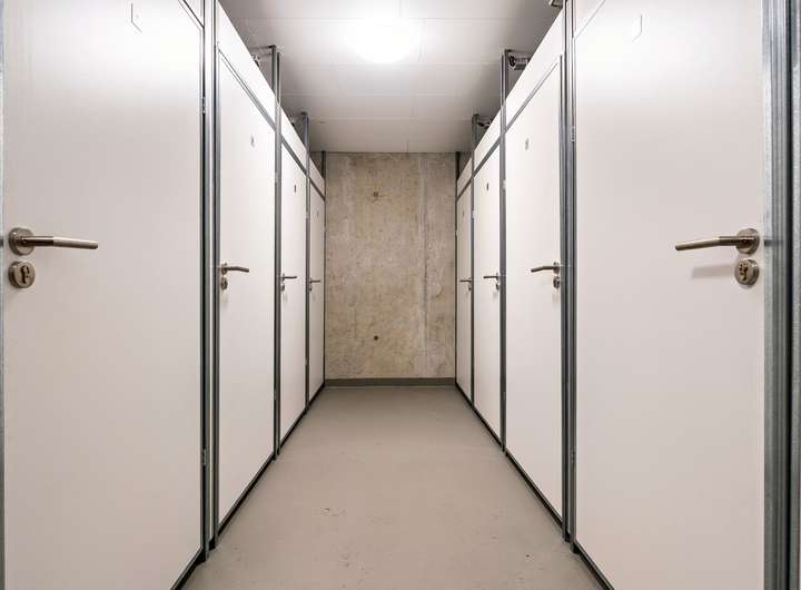 Es steht zudem ein separater Fahrradraum in der Tiefgarage zur Verfügung, in dem jede Wohnung über einen eigenen abschließbaren Stromanschluss verfügt – ideal zum sicheren Laden von E-Bikes.