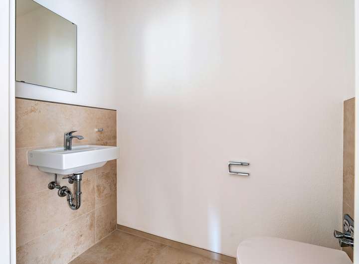 Die lichtdurchfluteten Räume schaffen eine helle und angenehme Wohnatmosphäre. Besonders praktisch ist das Gäste-WC sowie der Abstellraum innerhalb der Wohnung, der zusätzlichen Stauraum für Haushaltsutensilien bietet. Ergänzend steht ein separater Hauswirtschaftsraum mit Anschlussmöglichkeiten für Waschmaschine und Trockner zur Verfügung, sodass Sie Wäsche bequem und zentral erledigen können. Ein weiterer Kellerraum rundet das Platzangebot ab.
