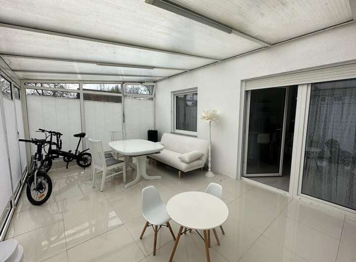 Ein besonderes Highlight ist der Wintergarten, der über eine einfache Fußbodenerwärmung verfügt. Dadurch lässt er sich vor allem in der Übergangszeit angenehm nutzen. Da er baurechtlich nicht als Wohnraum gilt und im Winter nicht vollständig beheizbar ist, zählt er nicht zur offiziellen Wohnfläche. Dennoch bietet er einen schönen Ort für entspannte Stunden mit Blick in den Garten.