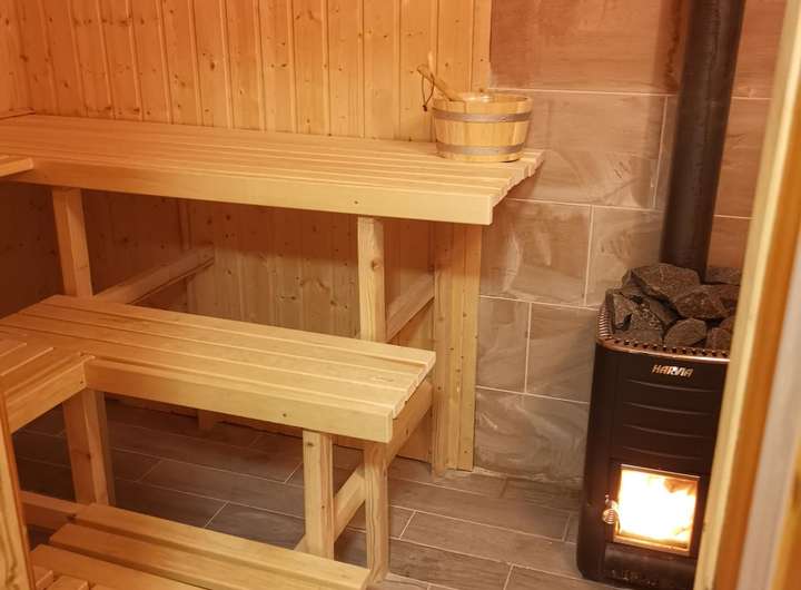 Ebenfalls attraktiv ist das separate kleine Saunahaus, ideal für Wellness, Ruhe und Erholung.