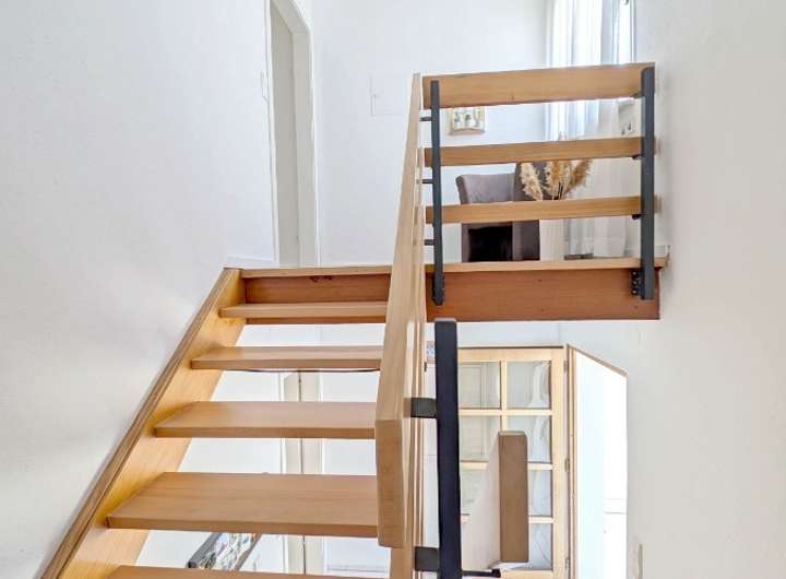 ° 2023 Holztreppe im Treppenhaus freigelegt (zuvor mit Teppich belegt)