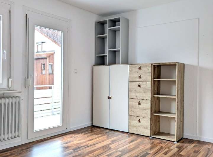DAS OBERGESCHOSS – über die schöne Holztreppe, die von den jetzigen Eigentümern aufwändig freigelegt wurde, gelangt man in die zweite Wohnebene. Der lichte Treppenabsatz bietet genug Platz für eine kleine Sitzgelegenheit. Die insgesamt 3 Zimmer sowie das Tageslichtbad mit Dusche und ein weiterer Raum mit Anschluss für eine Einbauküche können mit wenig Aufwand wieder zu einer zweiten Wohneinheit umgerüstet werden. Der sonnige Balkon ergänzt dann das Wohnangebot für Einzelpersonen, Paare und kleine Familien. Aktuell nutzen die Eigentümer diese Wohnebene als Homeoffices und Schlafzimmer.