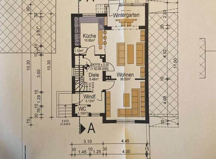 Beim Entrée spürt man den Charme des 1934 erbauten Hauses mit seinen alten und hochwertig erhaltenen Holzdielen sowie den hohen und tlw. abgesetzten Decken, die einen allesamt Ruhe und Gemütlichkeit fühlen lassen.