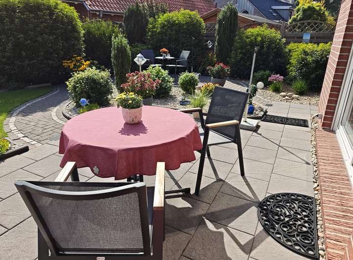 Der liebevoll angelegte Garten bietet Raum für Entspannung und Geselligkeit.