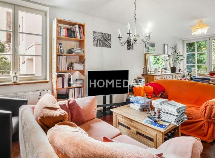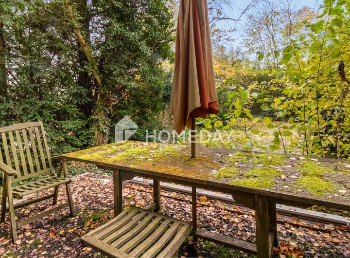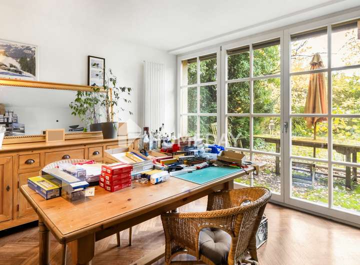 Der erste große Wohnbereich erstreckt sich über Erd- und Obergeschoss und umfasst rund 172 Quadratmeter mit fünf Zimmern. Großzügige Wohnflächen, edle Natursteinböden, Massivholzparkett und lichtdurchflutete Räume schaffen ein elegantes und zugleich wohnliches Ambiente. Im Erdgeschoss befindet sich eine moderne Einbauküche mit hochwertigen Markengeräten, die das Herzstück des Hauses bildet. Von hier aus gelangt man direkt in den hellen Wintergarten, der zu jeder Jahreszeit zum Verweilen einlädt und einen wunderbaren Blick ins Grüne bietet. Das angrenzende Wohnzimmer öffnet sich zur sonnigen Terrasse, die sich hervorragend für gemütliche Grillabende oder entspannte Stunden an der frischen Luft eignet. So entsteht ein harmonisches Zusammenspiel zwischen Innen- und Außenbereich, das den Wohnkomfort dieser Immobilie zusätzlich unterstreicht.