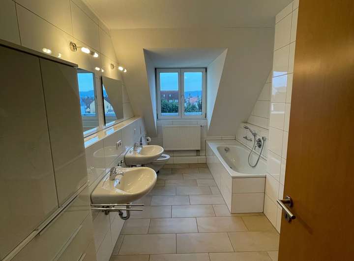 • Gäste-WC im Obergeschoss und Bad mit Badewanne und Dusche im Dachgeschoss