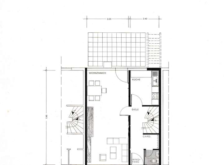 Beim Betreten des Hauses empfängt Sie ein wohnlicher Flur mit praktischer Garderobenecke und gepflegter Echtholztreppe. Das große Wohn-Esszimmer besticht durch seine breiten Fensterfronten und zahlreiche Gestaltungsmöglichkeiten sowie den direkten Zugang zum großen Garten mit einladender Terrasse, offener Rasenfläche, Obst- und Ziersträuchern. Die angrenzende Küche, bei der ein großes Fenster für eine helle, freundliche Atmosphäre sorgt, lässt sich mit einer entsprechenden Einbauküche optimal gestalten und könnte mit wenig Aufwand zum Wohn-Esszimmer hin geöffnet werden. Ein in Weiß gehaltenes Tageslicht-WC rundet das Raumangebot im Erdgeschoss ab.