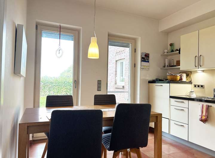 Die abgeschlossene Küche schafft Raum für Genuss und bietet Zugang auf die Terrasse.