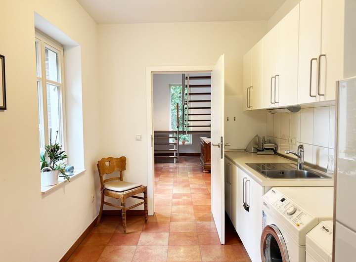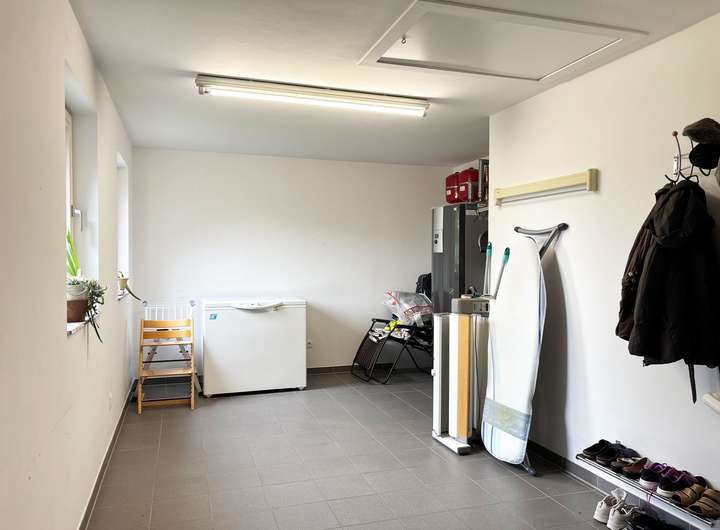 Sie fahren in die Garage und gelangen trockenen Fußes durch den Hauswirtschaftsraum direkt ins Haus.