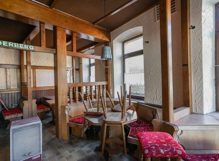 Die großzügige Gewerbefläche im Erdgeschoss wurde als Gastronomie / Wirtschaft genutzt und ist noch mittels einer Bar / Theke und mit Gastro-möbel eingerichtet mit sehr guter Sichtbarkeit für Ihr Gewerbe und liegt an einer gut frequentierten Straße mit hoher Sichtbarkeit.