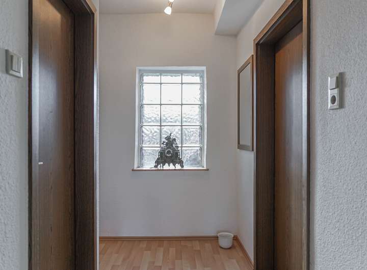 Auf gleicher Ebene wie die Gerwerbeeinheit liegt direkt gegenüber eine kleine gemütliche 2 ZKB-Wohnung mit ca. 45 m², welche nach Renovierung / Sanierung entweder als Dauer- oder auch Ferienwohnung vermietet werden kann und die Mieteinnahmen über dem örtlichen Mietspiegel dauerhaft steigern kann.