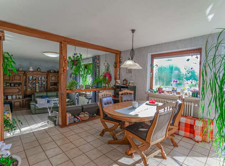 Dieses vielseitige Anwesen mit großzügigem Entwicklungs- und Ausbaupotenzial verbindet Wohnen mit selbstständiger Arbeit und ggf. mit eigener Pferdehaltung. Das gepflegte, jedoch sanierungsbedürftige Wohn- und Geschäftshaus bietet bis zu 3 separate Wohneinheiten, eine ehemalige Wirtschaft und einen großen darüberliegenden (Musik-/Tanz-)Saal, eine große Garage und ein Nebengebäude mit Pferdeboxen.