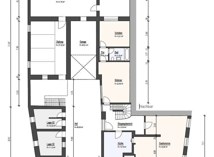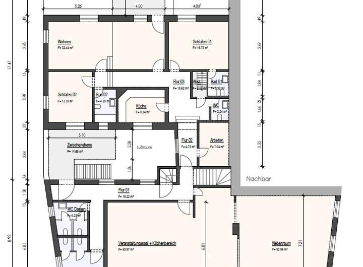 Die zusammengefasste Fläche von Wohn- und Nutzräume beträgt ca. 800qm und bietet Ihnen die ideale Möglichkeit zur Eigennutzung, Voll- bzw. Teilvermietung oder auch als Mehrgenerationenlösung. Das Anwesen kann so individuell genutzt werden und bietet für jede Nutzung eine Alternative.