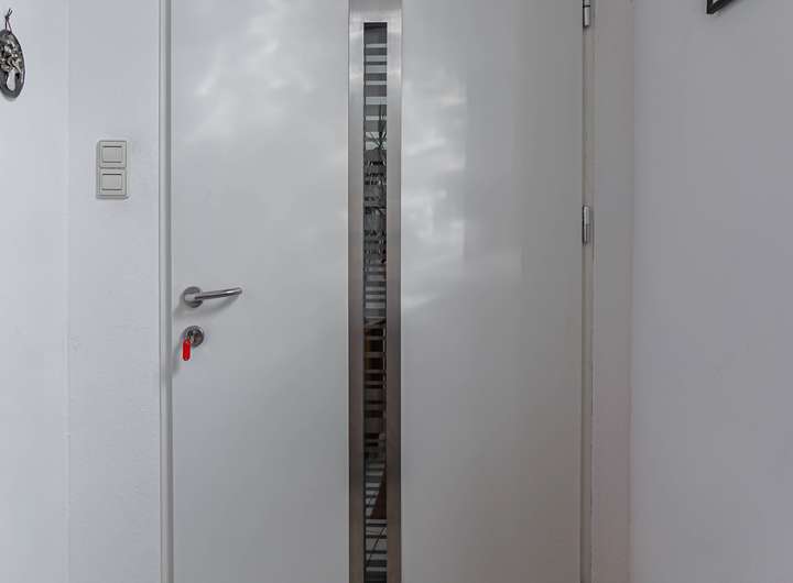 Auf gleicher Etage und gegenüberliegend gelangen Sie mittels einer separaten Abschlusstür in eine helle, geräumige 4 ZKB inkl. Balkon (Anbau einer Stahlkonstruktion) und wird derzeit noch bewohnt. Die Wohnung ist insgesamt sehr hell geschnitten und hat eine gute Raumaufteilung. Die Wohnung besteht aus einem langen Flur, der in alle Räume führt. Im Eingangsbereich befindet sich das Arbeitszimmer, anschließend die Küche, ein Gäste-WC, ein weiteres (Kinder-) Zimmer mit eigenem Duschbad und ein offenes Wohn- und Esszimmer in Split-Level-Bauweise. Vom Esszimmer erreichen Sie den angebauten Balkon, der Ihnen die Möglichkeit bietet, sich vom Alltagsstress zu erholen. Auf der herabgesetzten Wohnebene gelangen Sie in das Eltern-Schlafzimmer mit angrenzendem Badezimmer. Diese Wohneinheit erstreckt sich über eine Wohnfläche von ca. 116 m².